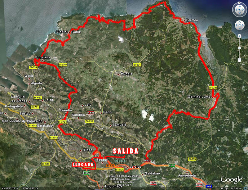 Y siguiendo con el buen tiempo, ayer dia 17 hemos salido de nuevo Dani, Mikel, Alberto, Alberto (Cubi), Iñaki y yo (Jorge). La vuelta desde Basauri hasta Sopelana pasando por Larrabetxu, Guernika, Bermeo, Bakio, Armintza, Gorliz y despues Sopelana. (120Km). Tomar algo en el Indian y de vuelta. Hemos hecho alguna foto. Estan en su sección. Plano de la salida.
